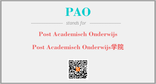 上述内容是“Post Academisch Onderwijs”作为“PAO”的缩写,解释为“Post Academisch Onderwijs学院”时的信息,以及英文缩略词PAO所代表的英文单词,其对应的中文拼音、详细解释以及在英文中的流行度和相关分类、应用领域及应用示例等。