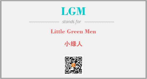 上述内容是“Little Green Men”作为“LGM”的缩写,解释为“小绿人”时的信息,以及英文缩略词LGM所代表的英文单词,其对应的中文拼音、详细解释以及在英文中的流行度和相关分类、应用领域及应用示例等。
