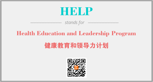上述内容是“Health Education and Leadership Program”作为“HELP”的缩写,解释为“健康教育和领导力计划”时的信息,以及英文缩略词HELP所代表的英文单词,其对应的中文拼音、详细解释以及在英文中的流行度和相关分类、应用领域及应用示例等。