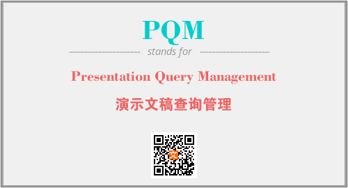 英文缩略词“PQM”经常作为“Presentation Query Management”的英文缩写来使用,中文表示:“演示文稿查询管理”。本文将详细介绍英文缩写词PQM所代表英文单词,其对应的中文拼音、详细解释以及在英语中的流行度。此外,还有关于缩略词PQM的分类、应用领域及相关应用示例等。