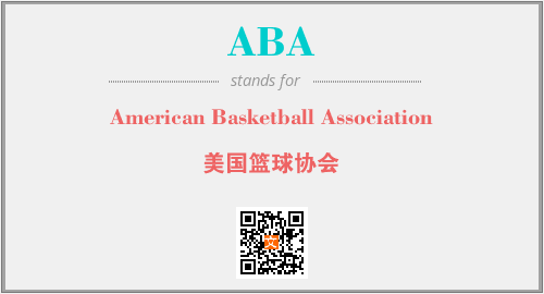 以上为American Basketball Association英文缩略词ABA的中文解释,以及该英文缩写在英语的流行度、分类和应用领域方面的信息。
