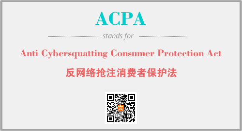 以上为Anti Cybersquatting Consumer Protection Act英文缩略词ACPA的中文解释,以及该英文缩写在英语的流行度、分类和应用领域方面的信息。