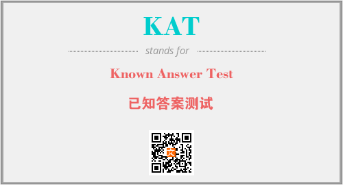 英文缩略词“KAT”经常作为“Known Answer Test”的英文缩写来使用,中文表示:“已知答案测试”。本文将详细介绍英文缩写词KAT所代表英文单词,其对应的中文拼音、详细解释以及在英语中的流行度。此外,还有关于缩略词KAT的分类、应用领域及相关应用示例等。
