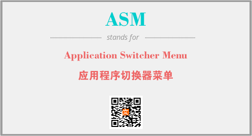 英文缩略词“ASM”经常作为“Application Switcher Menu”的英文缩写来使用,中文表示:“应用程序切换器菜单”。本文将详细介绍英文缩写词ASM所代表英文单词,其对应的中文拼音、详细解释以及在英语中的流行度。此外,还有关于缩略词ASM的分类、应用领域及相关应用示例等。