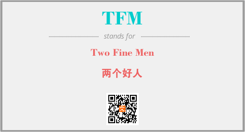 以上为Two Fine Men英文缩略词TFM的中文解释,以及该英文缩写在英语的流行度、分类和应用领域方面的信息。