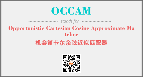 上述内容是“Opportunistic Cartesian Cosine Approximate Matcher”作为“OCCAM”的缩写,解释为“机会笛卡尔余弦近似匹配器”时的信息,以及英文缩略词OCCAM所代表的英文单词,其对应的中文拼音、详细解释以及在英文中的流行度和相关分类、应用领域及应用示例等。