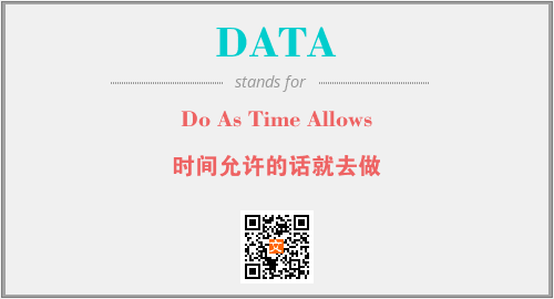 英文缩略词“DATA”经常作为“Do As Time Allows”的英文缩写来使用,中文表示:“时间允许的话就去做”。本文将详细介绍英文缩写词DATA所代表英文单词,其对应的中文拼音、详细解释以及在英语中的流行度。此外,还有关于缩略词DATA的分类、应用领域及相关应用示例等。
