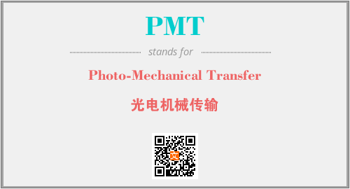 上述内容是“Photo-Mechanical Transfer”作为“PMT”的缩写,解释为“光电机械传输”时的信息,以及英文缩略词PMT所代表的英文单词,其对应的中文拼音、详细解释以及在英文中的流行度和相关分类、应用领域及应用示例等。