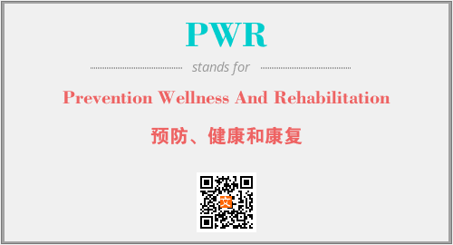 以上为Prevention Wellness And Rehabilitation英文缩略词PWR的中文解释,以及该英文缩写在英语的流行度、分类和应用领域方面的信息。