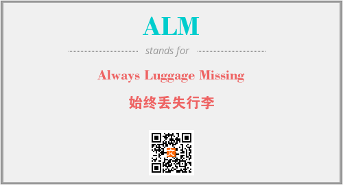 英文缩略词“ALM”经常作为“Always Luggage Missing”的英文缩写来使用,中文表示:“始终丢失行李”。本文将详细介绍英文缩写词ALM所代表英文单词,其对应的中文拼音、详细解释以及在英语中的流行度。此外,还有关于缩略词ALM的分类、应用领域及相关应用示例等。