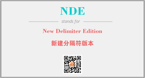 上述内容是“New Delimiter Edition”作为“NDE”的缩写,解释为“新建分隔符版本”时的信息,以及英文缩略词NDE所代表的英文单词,其对应的中文拼音、详细解释以及在英文中的流行度和相关分类、应用领域及应用示例等。