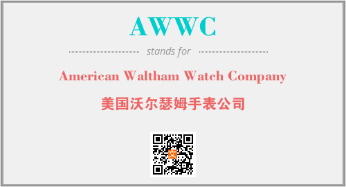 英文缩略词“AWWC”经常作为“American Waltham Watch Company”的英文缩写来使用,中文表示:“美国沃尔瑟姆手表公司”。本文将详细介绍英文缩写词AWWC所代表英文单词,其对应的中文拼音、详细解释以及在英语中的流行度。此外,还有关于缩略词AWWC的分类、应用领域及相关应用示例等。