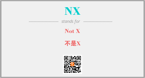 上述内容是“Not X”作为“NX”的缩写,解释为“不是X”时的信息,以及英文缩略词NX所代表的英文单词,其对应的中文拼音、详细解释以及在英文中的流行度和相关分类、应用领域及应用示例等。