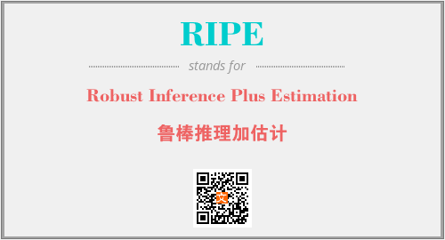 上述内容是“Robust Inference Plus Estimation”作为“RIPE”的缩写,解释为“鲁棒推理加估计”时的信息,以及英文缩略词RIPE所代表的英文单词,其对应的中文拼音、详细解释以及在英文中的流行度和相关分类、应用领域及应用示例等。