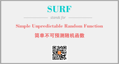 上述内容是“Simple Unpredictable Random Function”作为“SURF”的缩写,解释为“简单不可预测随机函数”时的信息,以及英文缩略词SURF所代表的英文单词,其对应的中文拼音、详细解释以及在英文中的流行度和相关分类、应用领域及应用示例等。