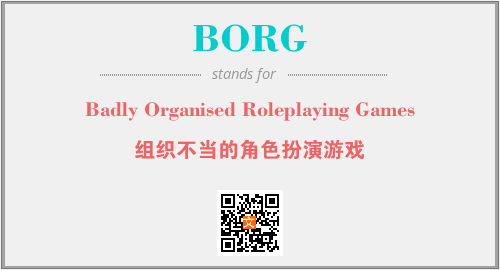 上述内容是“Badly Organised Roleplaying Games”作为“BORG”的缩写,解释为“组织不当的角色扮演游戏”时的信息,以及英文缩略词BORG所代表的英文单词,其对应的中文拼音、详细解释以及在英文中的流行度和相关分类、应用领域及应用示例等。