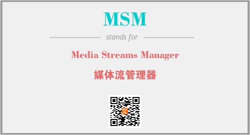 英文缩略词“MSM”经常作为“Media Streams Manager”的英文缩写来使用,中文表示:“媒体流管理器”。本文将详细介绍英文缩写词MSM所代表英文单词,其对应的中文拼音、详细解释以及在英语中的流行度。此外,还有关于缩略词MSM的分类、应用领域及相关应用示例等。
