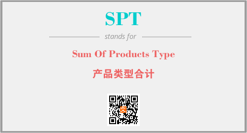 上述内容是“Sum Of Products Type”作为“SPT”的缩写,解释为“产品类型合计”时的信息,以及英文缩略词SPT所代表的英文单词,其对应的中文拼音、详细解释以及在英文中的流行度和相关分类、应用领域及应用示例等。