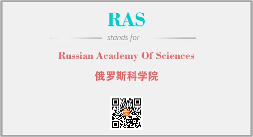 以上为Russian Academy Of Sciences英文缩略词RAS的中文解释,以及该英文缩写在英语的流行度、分类和应用领域方面的信息。