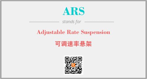 英文缩略词“ARS”经常作为“Adjustable Rate Suspension”的英文缩写来使用,中文表示:“可调速率悬架”。本文将详细介绍英文缩写词ARS所代表英文单词,其对应的中文拼音、详细解释以及在英语中的流行度。此外,还有关于缩略词ARS的分类、应用领域及相关应用示例等。