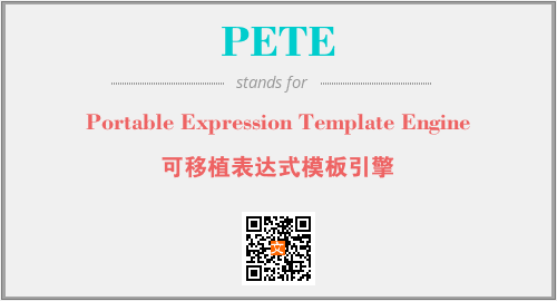以上为Portable Expression Template Engine英文缩略词PETE的中文解释,以及该英文缩写在英语的流行度、分类和应用领域方面的信息。