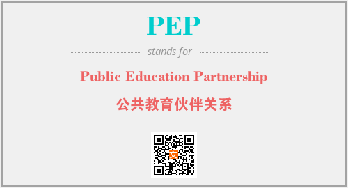 英文缩略词“PEP”经常作为“Public Education Partnership”的英文缩写来使用,中文表示:“公共教育伙伴关系”。本文将详细介绍英文缩写词PEP所代表英文单词,其对应的中文拼音、详细解释以及在英语中的流行度。此外,还有关于缩略词PEP的分类、应用领域及相关应用示例等。