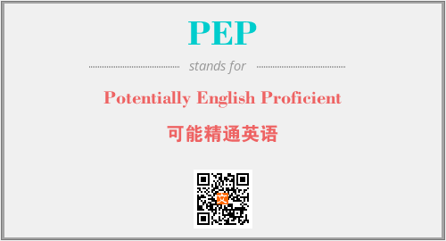 英文缩略词“PEP”经常作为“Potentially English Proficient”的英文缩写来使用,中文表示:“可能精通英语”。本文将详细介绍英文缩写词PEP所代表英文单词,其对应的中文拼音、详细解释以及在英语中的流行度。此外,还有关于缩略词PEP的分类、应用领域及相关应用示例等。