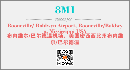 上述内容是“Booneville/ Baldwyn Airport, Booneville/Baldwyn, Mississippi USA”作为“8M1”的缩写,解释为“布内维尔/巴尔德温机场,美国密西西比州布内维尔/巴尔德温”时的信息,以及英文缩略词8M1所代表的英文单词,其对应的中文拼音、详细解释以及在英文中的流行度和相关分类、应用领域及应用示例等。