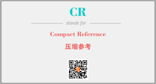 上述内容是“Compact Reference”作为“CR”的缩写,解释为“压缩参考”时的信息,以及英文缩略词CR所代表的英文单词,其对应的中文拼音、详细解释以及在英文中的流行度和相关分类、应用领域及应用示例等。