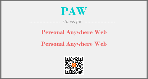 英文缩略词“PAW”经常作为“Personal Anywhere Web”的英文缩写来使用,中文表示:“Personal Anywhere Web”。本文将详细介绍英文缩写词PAW所代表英文单词,其对应的中文拼音、详细解释以及在英语中的流行度。此外,还有关于缩略词PAW的分类、应用领域及相关应用示例等。