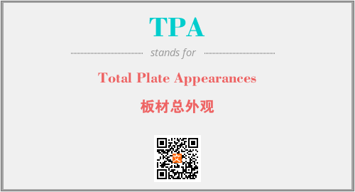 上述内容是“Total Plate Appearances”作为“TPA”的缩写,解释为“板材总外观”时的信息,以及英文缩略词TPA所代表的英文单词,其对应的中文拼音、详细解释以及在英文中的流行度和相关分类、应用领域及应用示例等。