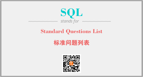 英文缩略词“SQL”经常作为“Standard Questions List”的英文缩写来使用,中文表示:“标准问题列表”。本文将详细介绍英文缩写词SQL所代表英文单词,其对应的中文拼音、详细解释以及在英语中的流行度。此外,还有关于缩略词SQL的分类、应用领域及相关应用示例等。