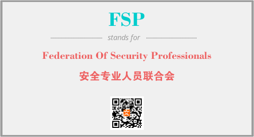 上述内容是“Federation Of Security Professionals”作为“FSP”的缩写,解释为“安全专业人员联合会”时的信息,以及英文缩略词FSP所代表的英文单词,其对应的中文拼音、详细解释以及在英文中的流行度和相关分类、应用领域及应用示例等。