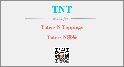 上述内容是“Taters N Toppings”作为“TNT”的缩写,解释为“Taters N浇头”时的信息,以及英文缩略词TNT所代表的英文单词,其对应的中文拼音、详细解释以及在英文中的流行度和相关分类、应用领域及应用示例等。