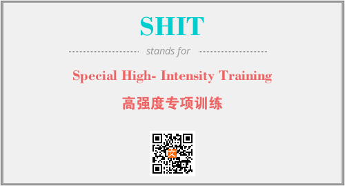 英文缩略词“SHIT”经常作为“Special High- Intensity Training”的英文缩写来使用,中文表示:“高强度专项训练”。本文将详细介绍英文缩写词SHIT所代表英文单词,其对应的中文拼音、详细解释以及在英语中的流行度。此外,还有关于缩略词SHIT的分类、应用领域及相关应用示例等。