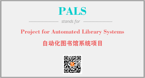 以上为Project for Automated Library Systems英文缩略词PALS的中文解释,以及该英文缩写在英语的流行度、分类和应用领域方面的信息。