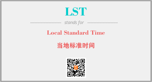 英文缩略词“LST”经常作为“Local Standard Time”的英文缩写来使用,中文表示:“当地标准时间”。本文将详细介绍英文缩写词LST所代表英文单词,其对应的中文拼音、详细解释以及在英语中的流行度。此外,还有关于缩略词LST的分类、应用领域及相关应用示例等。