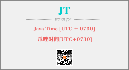 上述内容是“Java Time [UTC + 0730]”作为“JT”的缩写,解释为“爪哇时间[UTC+0730]”时的信息,以及英文缩略词JT所代表的英文单词,其对应的中文拼音、详细解释以及在英文中的流行度和相关分类、应用领域及应用示例等。