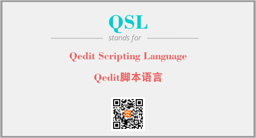 英文缩略词“QSL”经常作为“Qedit Scripting Language”的英文缩写来使用,中文表示:“Qedit脚本语言”。本文将详细介绍英文缩写词QSL所代表英文单词,其对应的中文拼音、详细解释以及在英语中的流行度。此外,还有关于缩略词QSL的分类、应用领域及相关应用示例等。