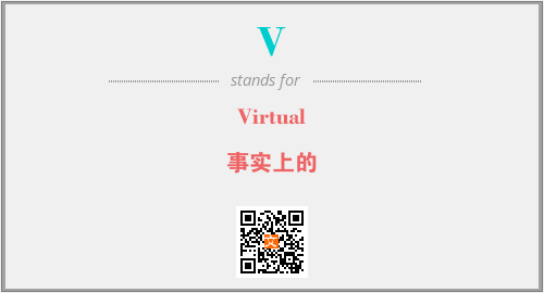 上述内容是“Virtual”作为“V”的缩写,解释为“事实上的”时的信息,以及英文缩略词V所代表的英文单词,其对应的中文拼音、详细解释以及在英文中的流行度和相关分类、应用领域及应用示例等。