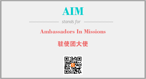 上述内容是“Ambassadors In Missions”作为“AIM”的缩写,解释为“驻使团大使”时的信息,以及英文缩略词AIM所代表的英文单词,其对应的中文拼音、详细解释以及在英文中的流行度和相关分类、应用领域及应用示例等。