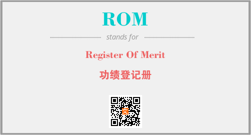英文缩略词“ROM”经常作为“Register Of Merit”的英文缩写来使用,中文表示:“功绩登记册”。本文将详细介绍英文缩写词ROM所代表英文单词,其对应的中文拼音、详细解释以及在英语中的流行度。此外,还有关于缩略词ROM的分类、应用领域及相关应用示例等。