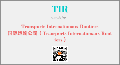 上述内容是“Transports Internationaux Routiers”作为“TIR”的缩写,解释为“国际运输公司(Transports Internationaux Routiers)”时的信息,以及英文缩略词TIR所代表的英文单词,其对应的中文拼音、详细解释以及在英文中的流行度和相关分类、应用领域及应用示例等。