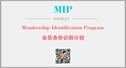 以上为Membership Identification Program英文缩略词MIP的中文解释,以及该英文缩写在英语的流行度、分类和应用领域方面的信息。