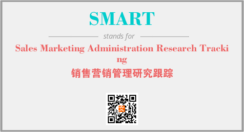 上述内容是“Sales Marketing Administration Research Tracking”作为“SMART”的缩写,解释为“销售营销管理研究跟踪”时的信息,以及英文缩略词SMART所代表的英文单词,其对应的中文拼音、详细解释以及在英文中的流行度和相关分类、应用领域及应用示例等。