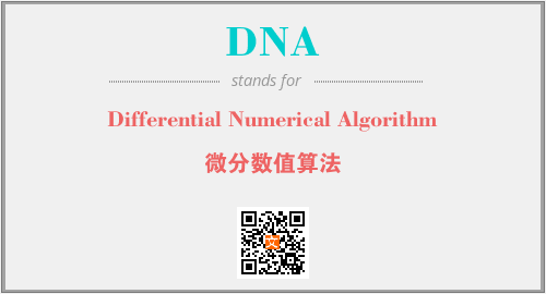 上述内容是“Differential Numerical Algorithm”作为“DNA”的缩写,解释为“微分数值算法”时的信息,以及英文缩略词DNA所代表的英文单词,其对应的中文拼音、详细解释以及在英文中的流行度和相关分类、应用领域及应用示例等。