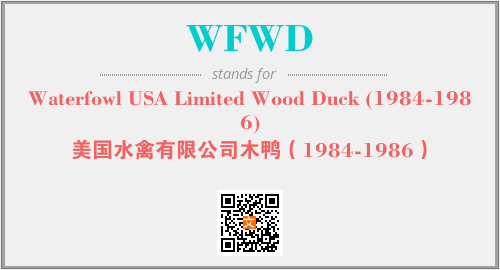 上述内容是“Waterfowl USA Limited Wood Duck (1984-1986)”作为“WFWD”的缩写,解释为“美国水禽有限公司木鸭(1984-1986)”时的信息,以及英文缩略词WFWD所代表的英文单词,其对应的中文拼音、详细解释以及在英文中的流行度和相关分类、应用领域及应用示例等。
