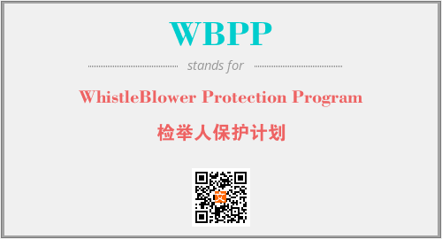 上述内容是“WhistleBlower Protection Program”作为“WBPP”的缩写,解释为“检举人保护计划”时的信息,以及英文缩略词WBPP所代表的英文单词,其对应的中文拼音、详细解释以及在英文中的流行度和相关分类、应用领域及应用示例等。