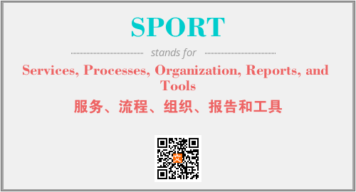 上述内容是“Services, Processes, Organization, Reports, and Tools”作为“SPORT”的缩写,解释为“服务、流程、组织、报告和工具”时的信息,以及英文缩略词SPORT所代表的英文单词,其对应的中文拼音、详细解释以及在英文中的流行度和相关分类、应用领域及应用示例等。
