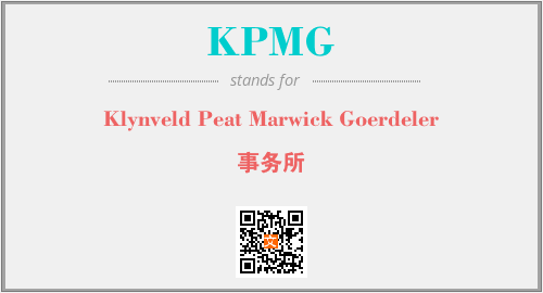 上述内容是“Klynveld Peat Marwick Goerdeler”作为“KPMG”的缩写,解释为“事务所”时的信息,以及英文缩略词KPMG所代表的英文单词,其对应的中文拼音、详细解释以及在英文中的流行度和相关分类、应用领域及应用示例等。